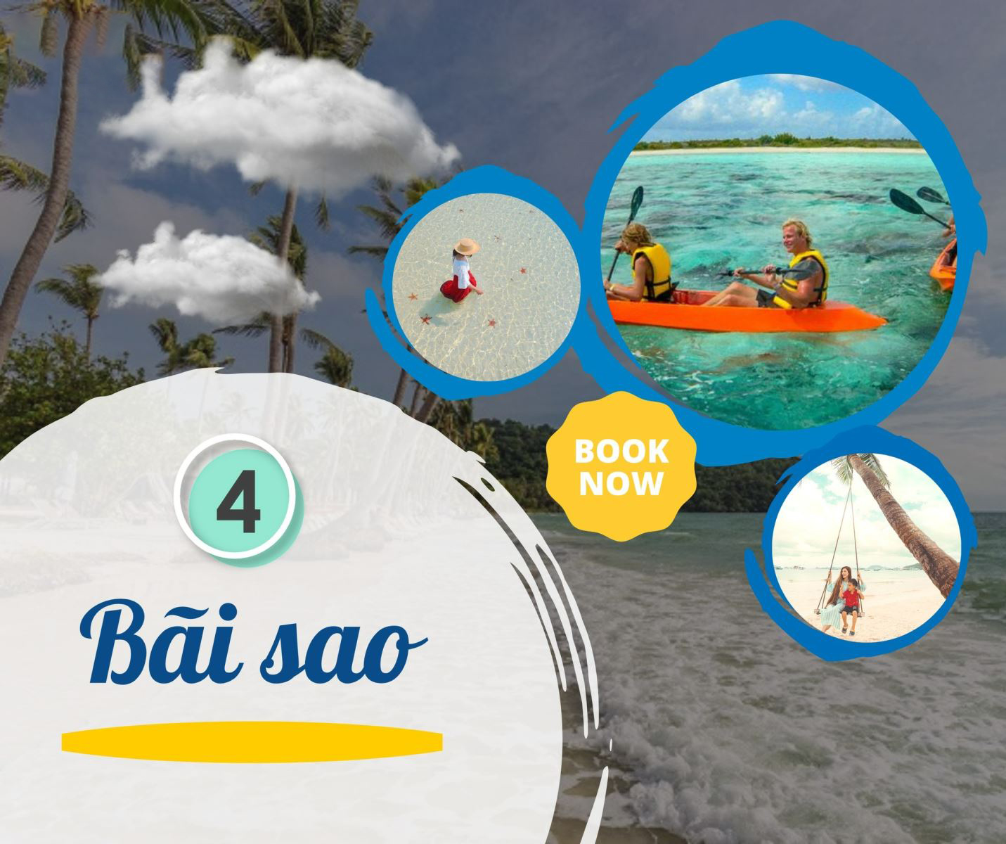 Bãi Sao là một trong những bãi tắm đẹp nhất tại Phú Quốc với bờ cát trắng mịn, những con sống vỗ yên bình, hàng dương xanh cao vút đưa mình theo làn gió sẽ thu hút bạn ngay từ cảm nhận đầu tiên. Khởi nguồn của tên gọi Bãi Sao cũng rất thú vị. Tương truyền rằng ngày xưa, mỗi khi hoàng hôn buông xuống thì hàng nghìn chú sao biển từ đại dương lại kéo nhau tràn vào bờ để tắm trăng, tạo nên một cảnh sắc vô cùng lãng mạn và ấn tượng. Và cái tên Bãi Sao cũng ra đời từ đó. Nơi này có vị trí khuất gió nên thời tiết vô cùng êm ả, lặng sóng.