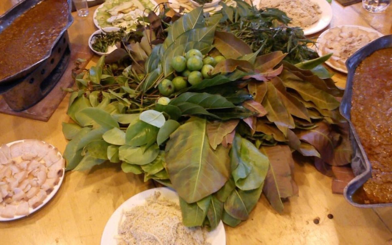 Nguyên liệu của món lẩu từ 10 loại lá rừng khác nhau