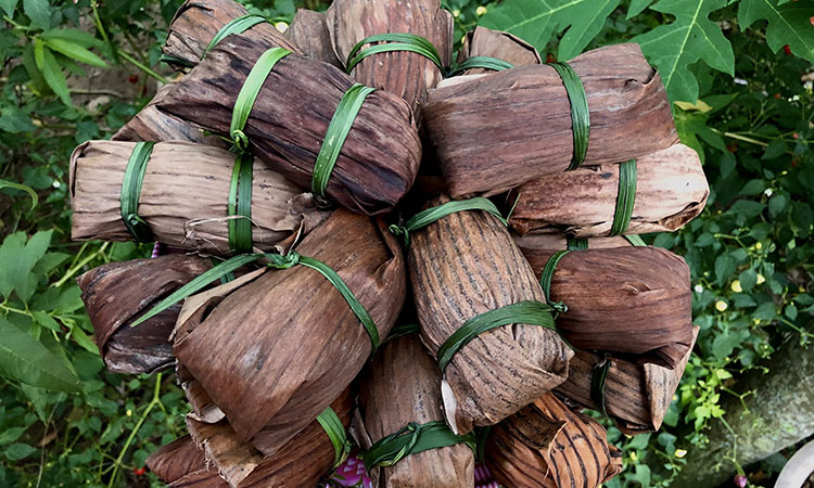 Bánh được gói bằng lá chuối, buộc bằng lạt tre tạo thành hình trụ dài và được hấp trong khoảng 2 tiếng. Khi chín, bánh tỏa ra hương thơm nồng nàn của mật mía hòa quyện với mùi lá chuối.