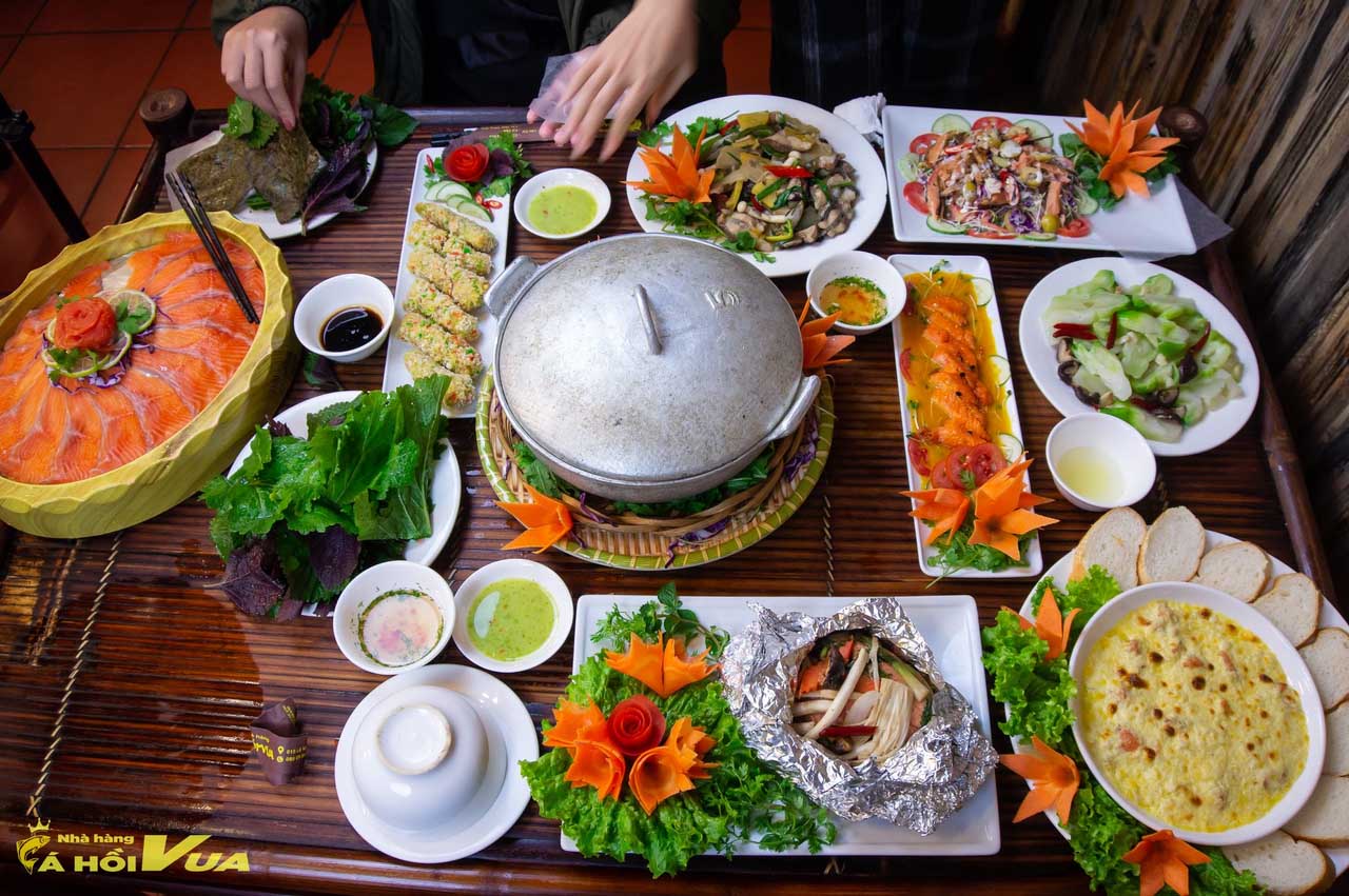 Để giữ được hương vị đặc trưng của món cá hồi, Nhà Hàng Cá Hồi Vua Sa Pa luôn chọn những con cá tươi nhất, còn sống từ bể cá lớn nhất Sapa. Trong các món ăn ngon ở đây, lẩu cá hồi là món không thể bỏ qua.