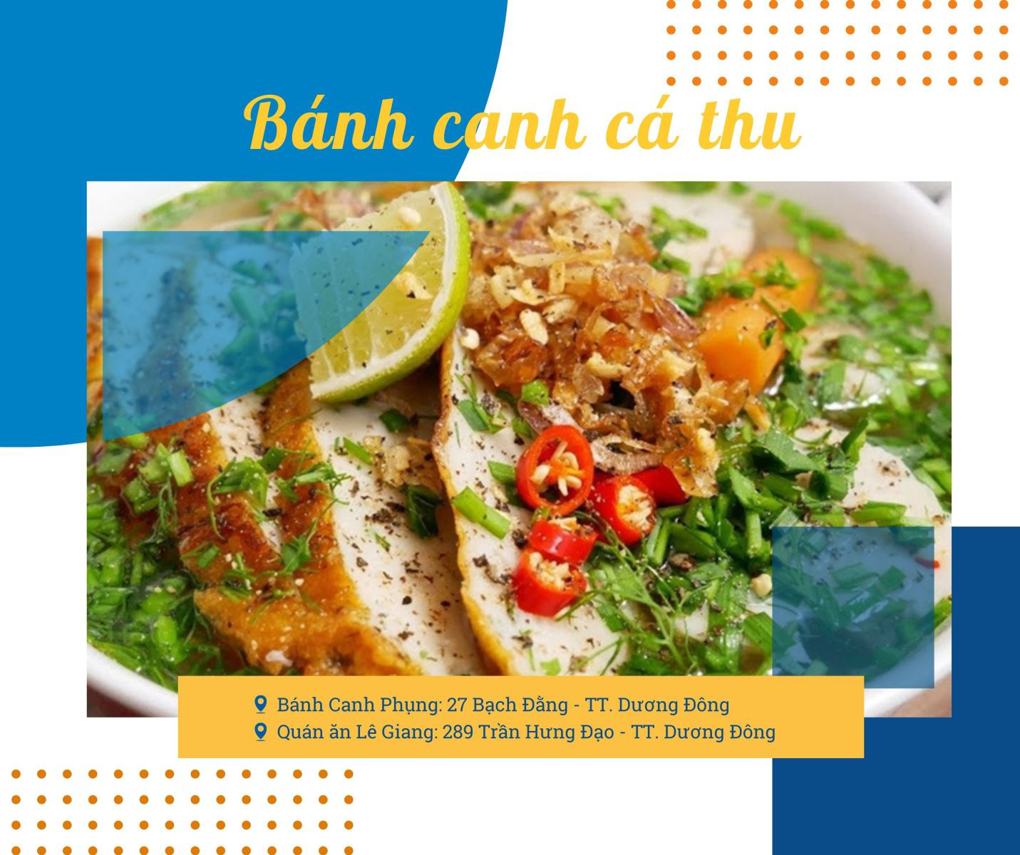 Bánh canh cá thu chỉ sử dụng cá thu tươi ngon do ngư dân đảo đánh bắt được. Cá thu ngoài được nấu tươi, còn được làm chả cá chiên, tất cả sẽ có trong một tô bánh canh thơm phức, say lòng người.