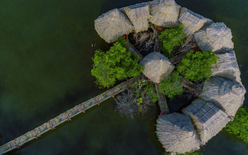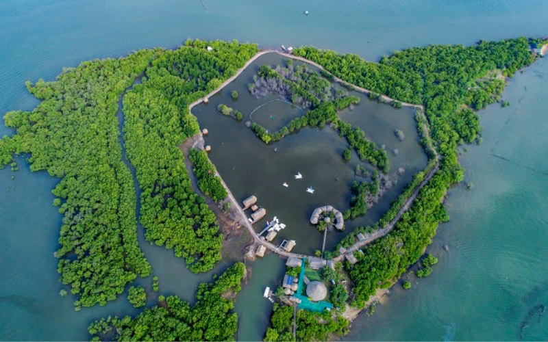 Không khí ở đảo vô cùng mát mẻ, trong lành trái ngược với thành phố chật hẹp và đầy ô nhiễm. Nếu nhìn từ trên cao, hòn đảo được bao phủ một màu xanh mát đầy nhựa sống, xung quang cũng được bao quanh bởi những loài cây ngập mặn giống như bức tường vững trãi.