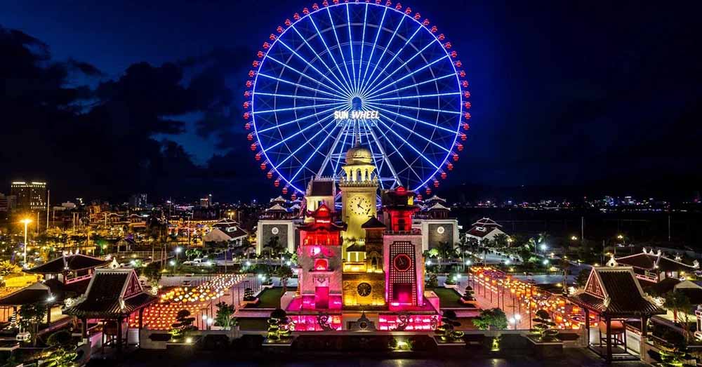 - Vòng Quay Sun Wheel: Công trình Sun Wheel gây ấn tượng với chiều cao 115m tương đương với một tòa nhà 25 tầng và có ánh sáng vô cùng rực rỡ từ 13.000 chiếc đèn led. Thưởng thức toàn cảnh đẹp của thành phố Đà Nẵng từ Sun Wheel là một trải nghiệm lãng mạn và tuyệt vời mà du khách không nên bỏ lỡ.
