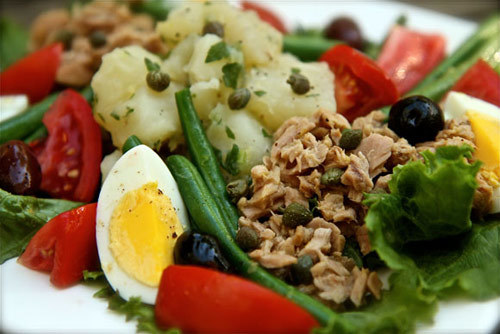 Thành phố Nice xinh đẹp của nước Pháp sở hữu một món salade nổi tiếng đó là Salade Nicoise. Hiện nay đây là một trong những món ăn nổi tiếng thường có mặt trong thực đơn của các nhà hàng Pháp với nguyên liệu chính là các loại rau củ xanh mát, giòn ngọt được trộn kèm với cá ngừ, cà chua, trứng luộc cùng với loại nước sốt ngon tuyệt. Món này được dùng làm món khai vị, nhưng cũng có thể là bữa ăn đầy đủ, dùng kèm rượu vang.