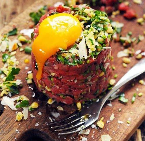 Tartare Steak là món thịt bò sống được nhiều người biết tới trên thế giới. Món ăn này thực chất chỉ là thịt bò hoặc đôi khi là thịt ngựa được băm hoặc thái nhỏ