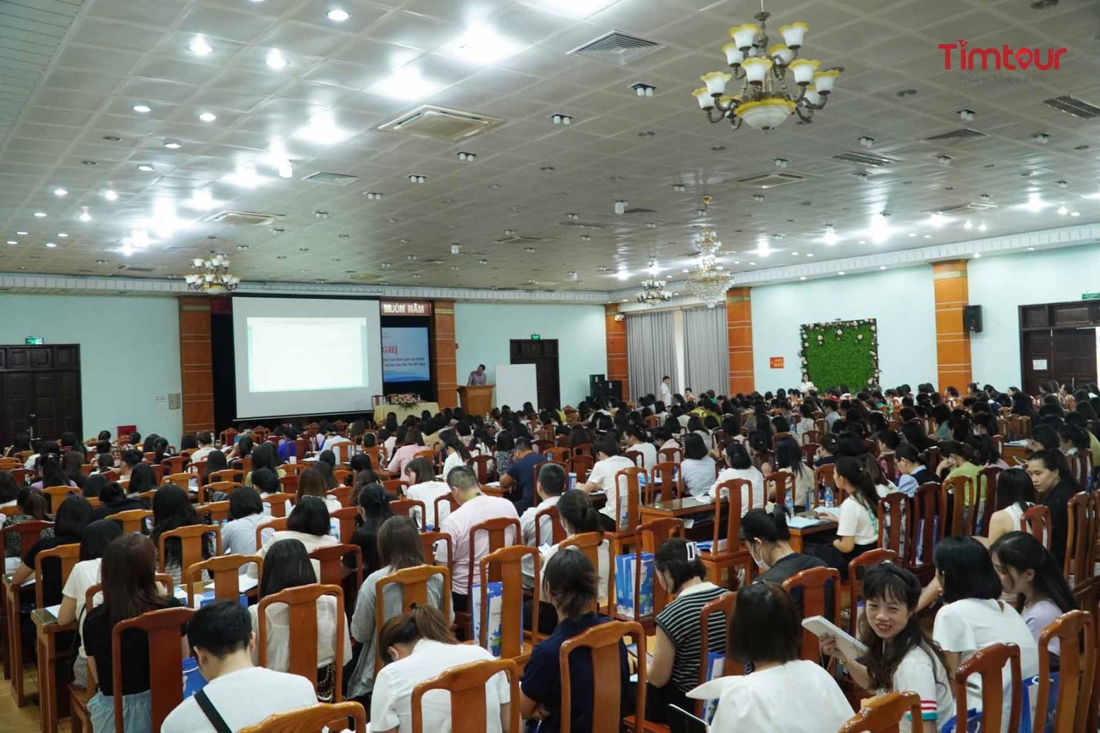 Công tác chuẩn bị về cơ sở vật chất, đón tiếp được đội ngũ nhân sự Timtour thực hiện chuyên nghiệp, cẩn thận và chu đáo. Khu vực check in được trang trí bài bản, đúng chủ đề. Những người tới tham dự Hội nghị được nhân sự Timtour hướng dẫn và phát tài liệu tập huấn tại khu vực check in.