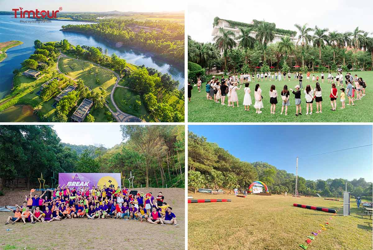 - Ưu điểm: Không gian rộng lớn, thoáng đãng, cảnh quan thiên nhiên đẹp. Có hồ nước, rừng cây, bãi cỏ, phù hợp cho các hoạt động ngoài trời. Nhiều hoạt động vui chơi, giải trí: chèo thuyền, câu cá, đạp xe, tắm hồ… Có khu vực tổ chức team building riêng, đáp ứng nhu cầu của các đoàn khách.