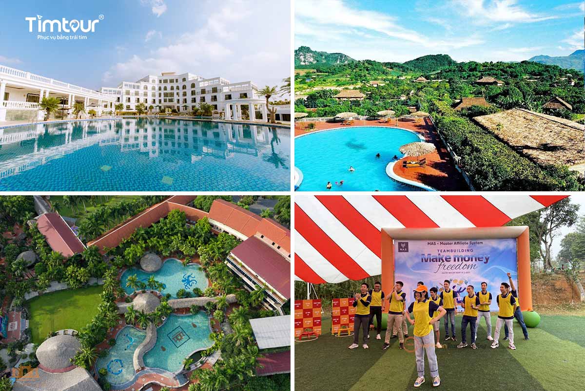 - Ưu điểm: Tọa lạc tại thung lũng Kim Bôi, nơi nổi tiếng với nguồn suối khoáng nóng tự nhiên. Không gian yên tĩnh, trong lành, gần gũi với thiên nhiên. Cảnh quan đẹp, được bao quanh bởi núi rừng hùng vĩ. Dịch vụ đa dạng, bao gồm tắm khoáng nóng, spa, massage, bể bơi, nhà hàng, khu vui chơi trẻ em… Phù hợp cho cả nghỉ dưỡng và tổ chức sự kiện.